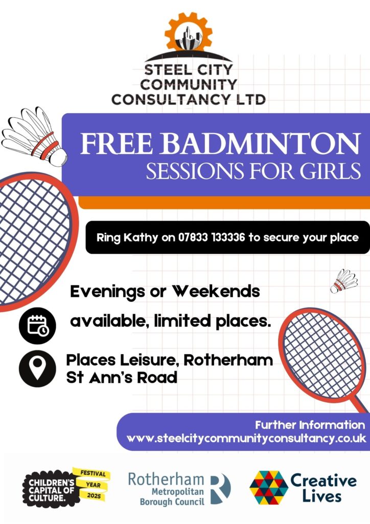 Badminton sessions– We have been delivering badminton sessions for young women at Rotherham Leisure Centre on Saturday afternoons.